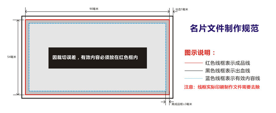 1、文件有效内容离裁切边≥3mm的距离,可使产品美观,避免裁切误差导致内容被切除。